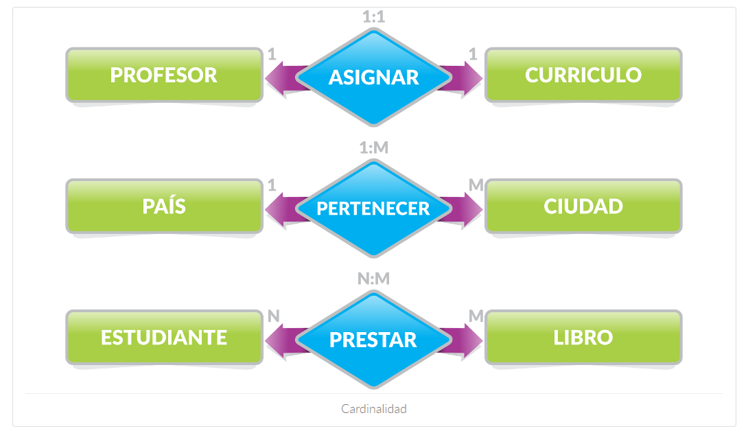 Para entender mejor este concepto, tener en cuenta que cada relación se debe leer en ambos sentidos, y así determinar la cardinalidad en cada extremo. También tener en cuenta que siempre se toma un registro de una entidad y se observa con cuantos registros se puede relacionar como máximo en la otra entidad y viceversa.